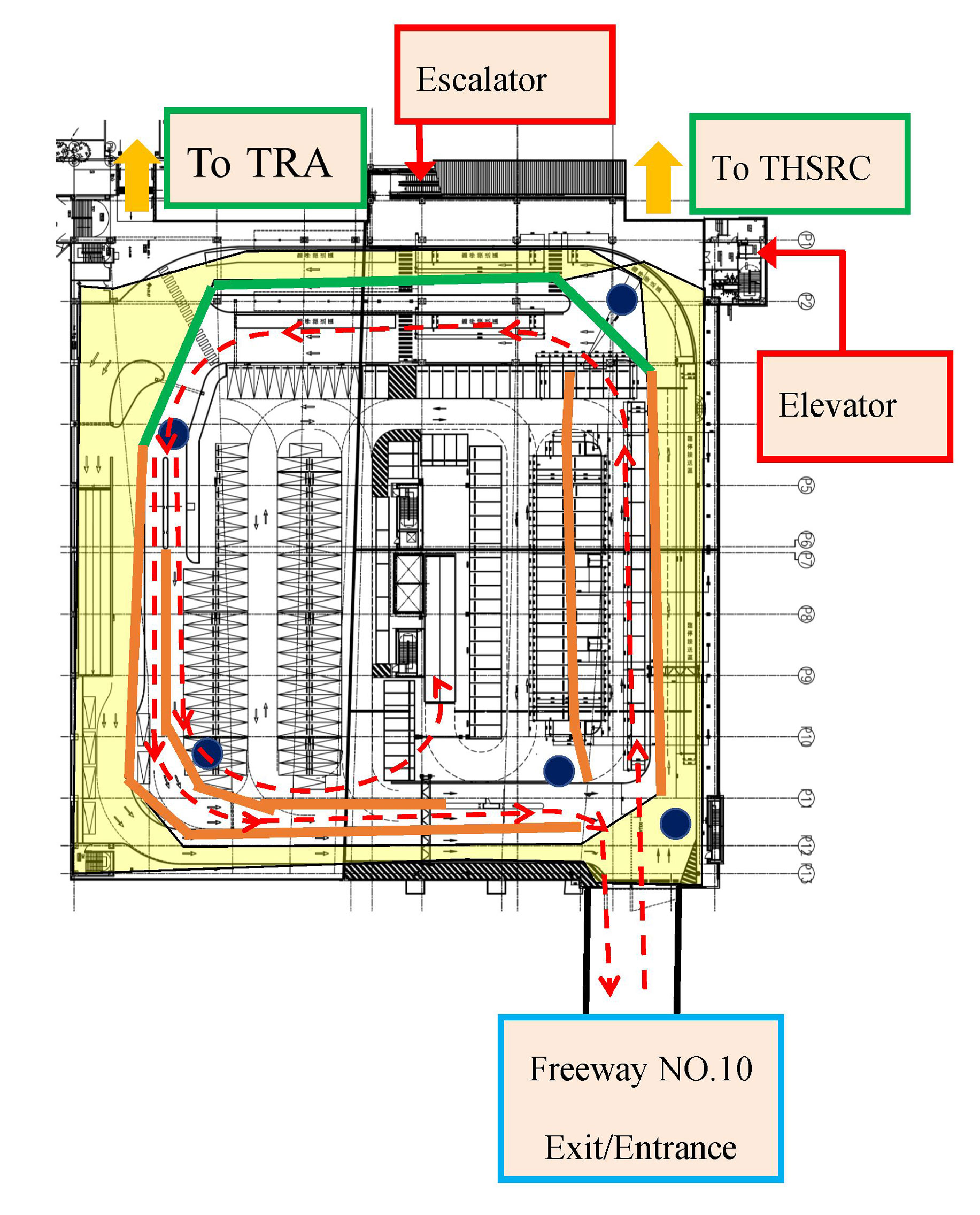 During this period, traffic flow and the number of available spaces in the affected area will be impacted. If you need to stop briefly for pick-up or drop-off, please consider using the 30-minute free parking available on all floors of the garage, or the designated pick-up/drop-off area on the ground-level Gaotie Road.