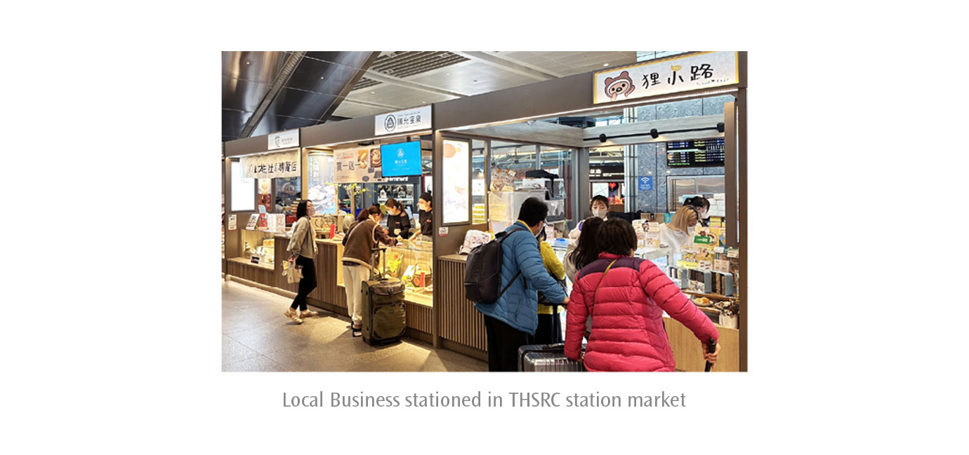 To promote the growth of local industries and capitalize on local business opportunities, THSRC has established station markets and local production halls throughout its operations in Taiwan. These facilities support the production of local raw materials and creating local employment opportunities through concrete actions such as low rental fee for local business.