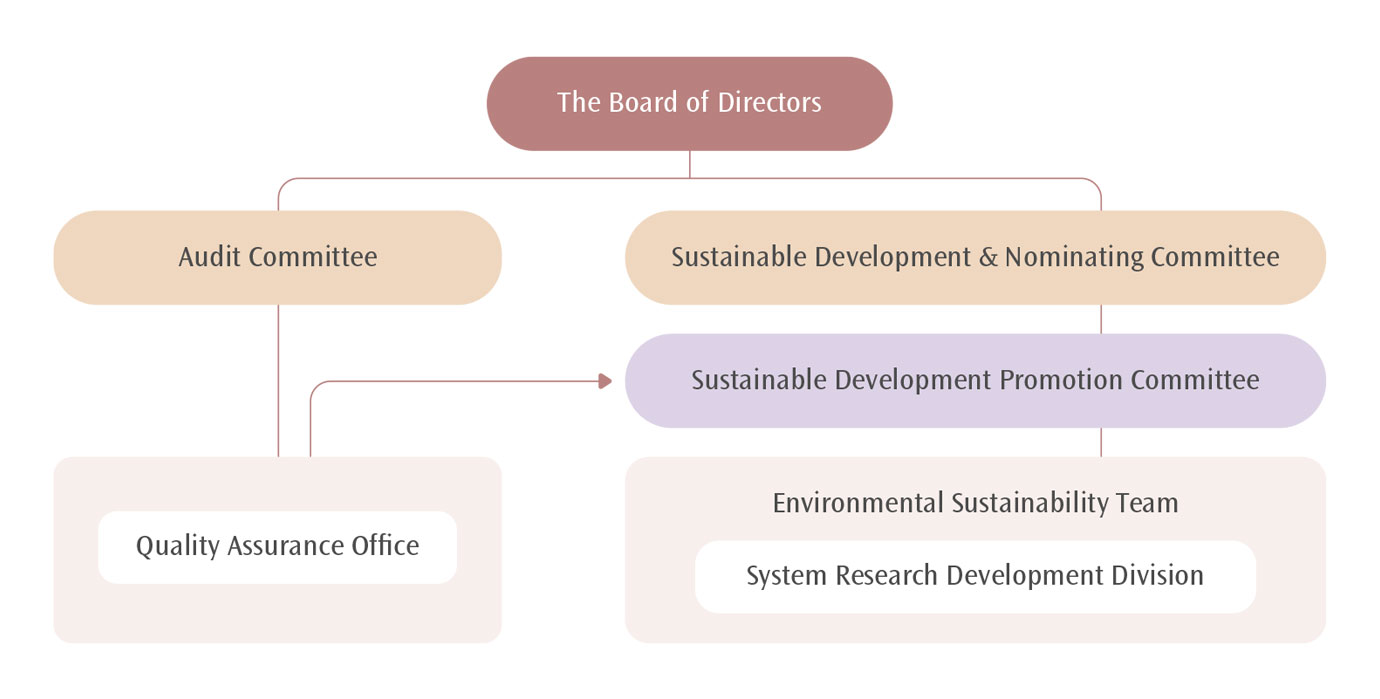 In addition, to align with IFRS Sustainability Disclosure Standard S2 “Climate-related Disclosures,” the risk management framework has incorporated climate risks, forming a dual-track management mechanism. The overall risk management is supervised by the Quality Assurance Office under the Audit Committee.At the same time, climate risk-related strategies, metrics, and targets are planned and executed by the Environmental Sustainability Team under the Sustainable Development Promotion Committee, with regular reporting to the Board of Directors and the Sustainable Development & Nominating Committee. The organizational structure and operational mechanism are as follows: